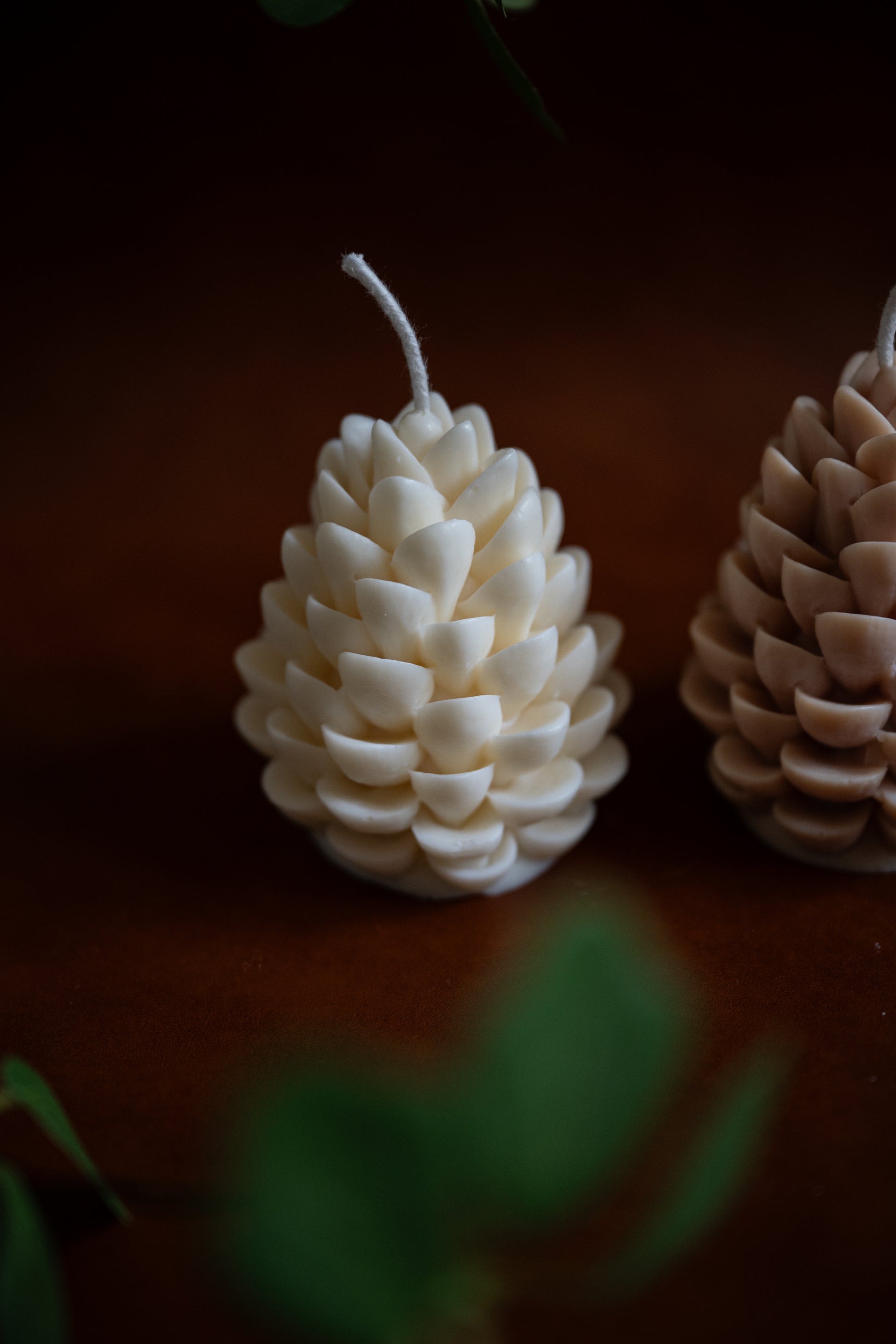 De brede dennenappelvorm geeft de kaars een robuuste, warme uitstraling die perfect past bij herfst- en winterdecoraties, maar ook het hele jaar door voor een knusse sfeer zorgt. Dankzij het gedetailleerde ontwerp en de zachte, natuurlijke kleur vormt de kaars een echte blikvanger op tafel, een dressoir of in een sfeervol kaarsenhoekje.